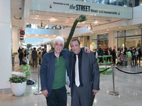 أخذنا طريقنا بعد ذلك إلى واحد من قطارات الأنفاق متجهين إلى ويست فيلد Westfield –Stratford في شرق لندن قرب الملعب الأولمبي وقريبا من بوابة القطارات أخذنا صورة سلفي معا، هي المعروضة أعلى المدونة.... وتحادثنا طوال الطريق حتى وصلنا المتجر المقصو وللمرة الثانية تسوقت أو تسوق لي سداد، بينا نتبادل أطراف الحديث... عن مجانين ومصر والعراق وسوريا ولم تكن آراؤنا تتجه صوب الاختلاف في شيء، فقط عرفت عن العراق ما لم أعرف من قبل، وربما عرف سداد عن مصر ما لم يعرف –وإن كنت أشك في ذلك فهو واسع الاطلاع ومصر ما شاء الله مفضوحة- وبينا نسير اقترح سداد عليه وتبرع أحد الزوار بالتقاط صورة لنا. وفي الحقيقة كانت هناك حاجيات نحملها ولكن تم وضعها جانبا لنلتقط هذه الصورة إلى يمين الصفحة التي يقول عنها سداد (هذه الصورة أكثر تعبيرا للوقت الممتع الذي قضيناه معا. كانت عدد خطواتنا سوية في ذلك اليوم ١٤ ألف خطوة وما يعادل ٩ كيلو متر. ذكرني وائل بأنه يقضي ساعات عمله جلوسا عكس هذا اليوم).. ويكمل: توجه وائل لقضاء الصلاة في الفندق الذي نزلت فيه...